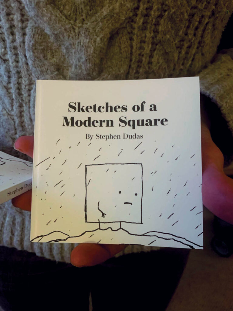 We have a new small book on the way to you—Sketches of a Modern Square, by Stephen Dudas. It’s adorable, charming, clever, sad, and delightfully square. It’s maybe a perfect stocking stuffer, if you’re into stuffing stockings. It’s also perfect for putting in your pocket, carrying in your purse, keeping in your glove box, and leaving on the bus for someone to find. Every time I read it, I find it newly charming. I will say that our Bourg machine was such a champ with this one–machines must have an affinity for squares.